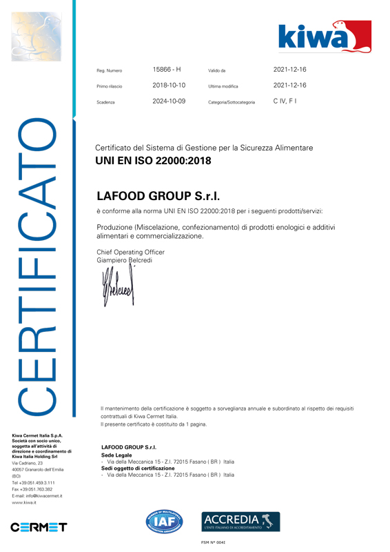 Consolidatasi in Italia, Lafood Group ha iniziato a operare a livello internazionale divenendo ben presto uno dei brand più importanti nel settore delle biotecnologie enologiche a livello mondiale.
